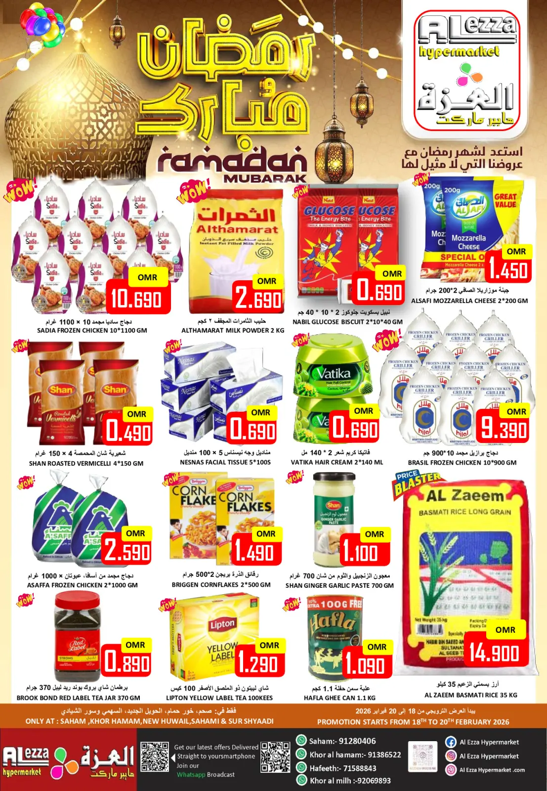 اكتشف أحدث عروض العزة هايبر ماركت في عمان اليوم وتصفح كاتالوج عروض رمضان مبارك واستفد من أفضل الأسعار حتى 20 فبراير 2026.
