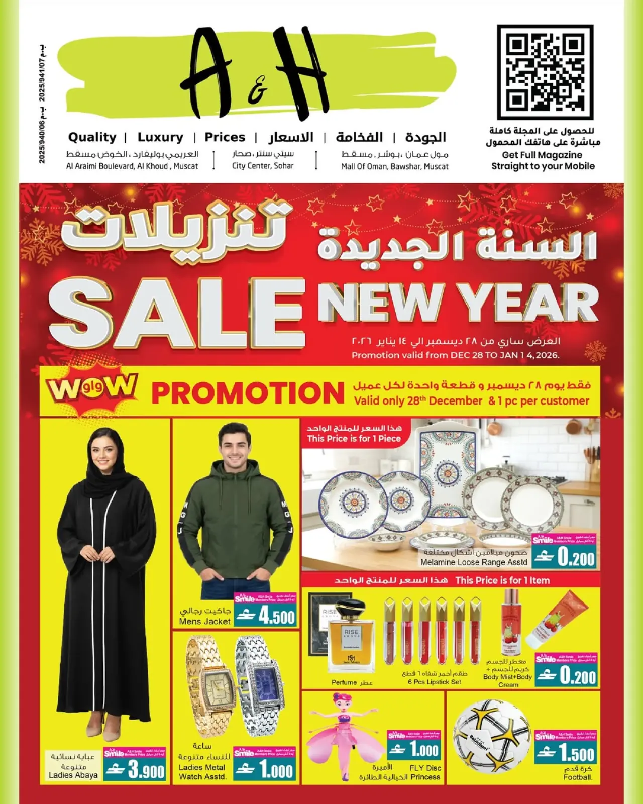 تنويه: صور وأسعار عروض السنة الجديدة في أيه أند أتش عمان المعروضة في هذا الكاتالوج لأغراض توضيحية فقط، وتخضع للتوفر في الفروع خلال فترة العرض.