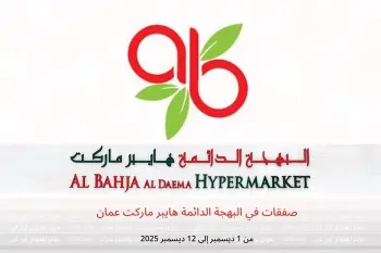 البهجة الدائمة هايبر ماركت عمان تعلن عن تخفيضات جديدة بعنوان « صفقات » المتوفرة حتي يوم 12 ديسمبر 2025, عروض جديدة وأسعار فقط في عمان.