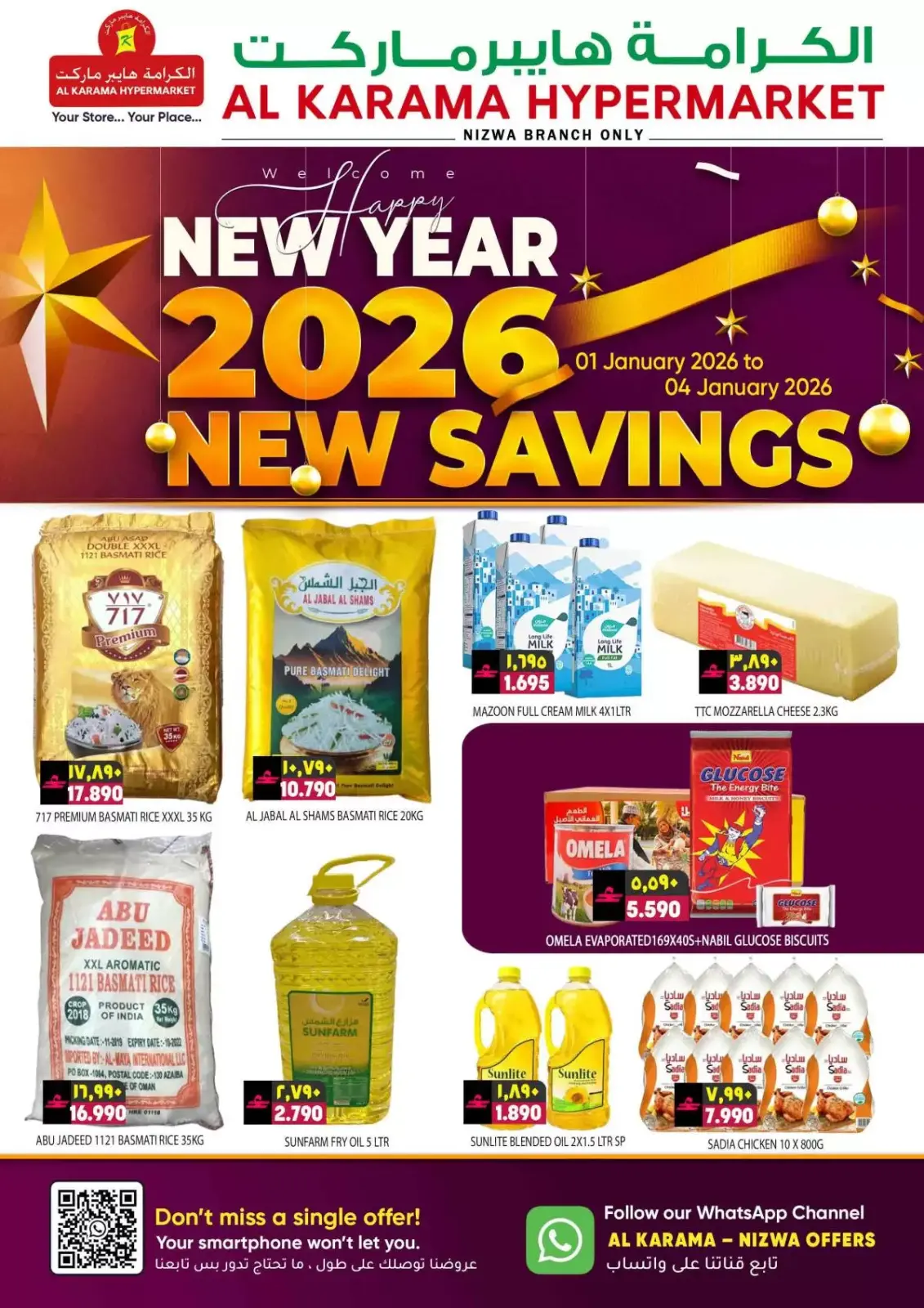 اكتشف أحدث عروض الكرامة هايبر ماركت في عمان اليوم بفروع نزوى وتصفح كاتالوج توفيرات العام الجديد واستفد من أفضل الأسعار حتى 4 يناير 2026.