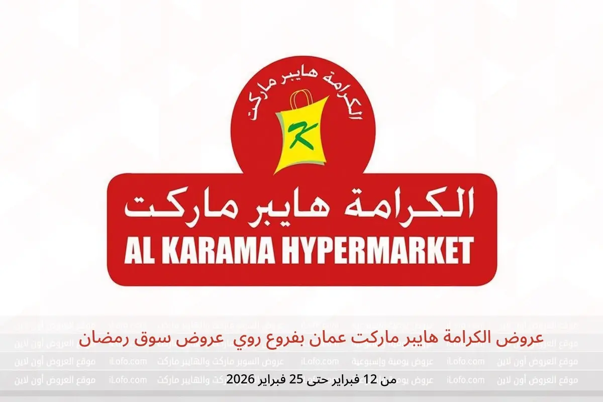 اكتشف أحدث عروض الكرامة هايبر ماركت في عمان اليوم بفروع روي وتصفح كاتالوج عروض سوق رمضان واستفد من أفضل الأسعار حتى 25 فبراير 2026.