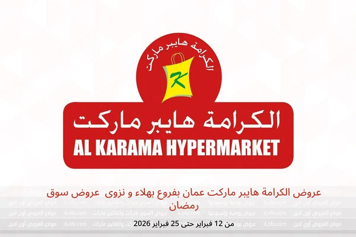 اكتشف أحدث عروض الكرامة هايبر ماركت في عمان اليوم بفروع بهلاء و نزوى وتصفح كاتالوج عروض سوق رمضان واستفد من أفضل الأسعار حتى 25 فبراير 2026.