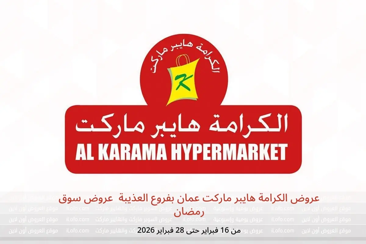 اكتشف أحدث عروض الكرامة هايبر ماركت في عمان اليوم بفروع العذيبة وتصفح كاتالوج عروض سوق رمضان واستفد من أفضل الأسعار حتى 28 فبراير 2026.