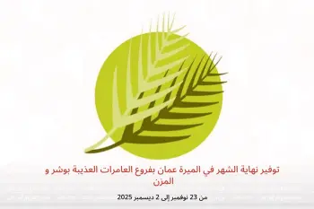 الميرة عمان بفروع بوشر العامرات العذيبة و المزن تعلن عن تخفيضات جديدة بعنوان « توفير نهاية الشهر » المتوفرة حتي يوم 2 ديسمبر 2025, عروض جديدة وأسعار فقط في عمان.