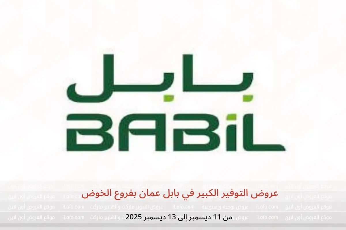بابل عمان بفروع الخوض تعلن عن تخفيضات جديدة بعنوان « عروض التوفير الكبير » المتوفرة حتي يوم 13 ديسمبر 2025, عروض جديدة وأسعار فقط في عمان.