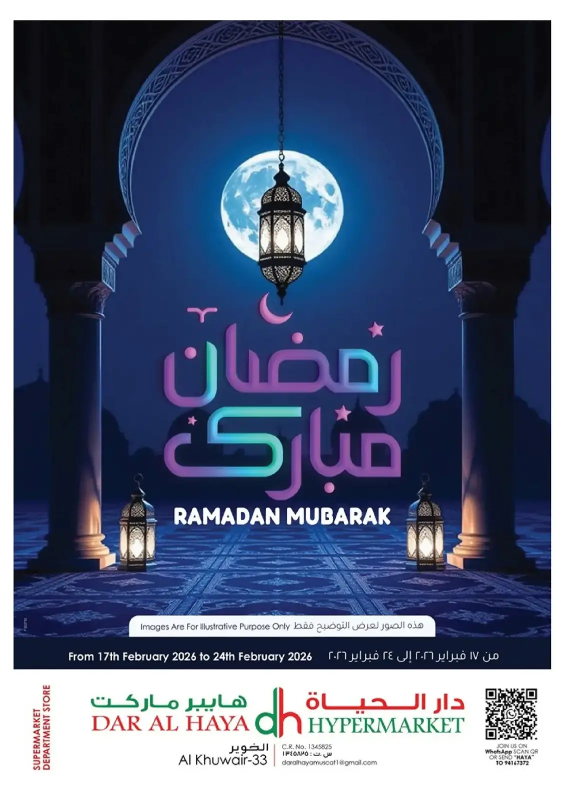 تنويه: صور وأسعار عروض دار الحياة هايبر ماركت عمان بفروع الخوير عروض رمضان مبارك المعروضة في هذا الكاتالوج لأغراض توضيحية فقط، وتخضع للتوفر في الفروع خلال فترة العرض.