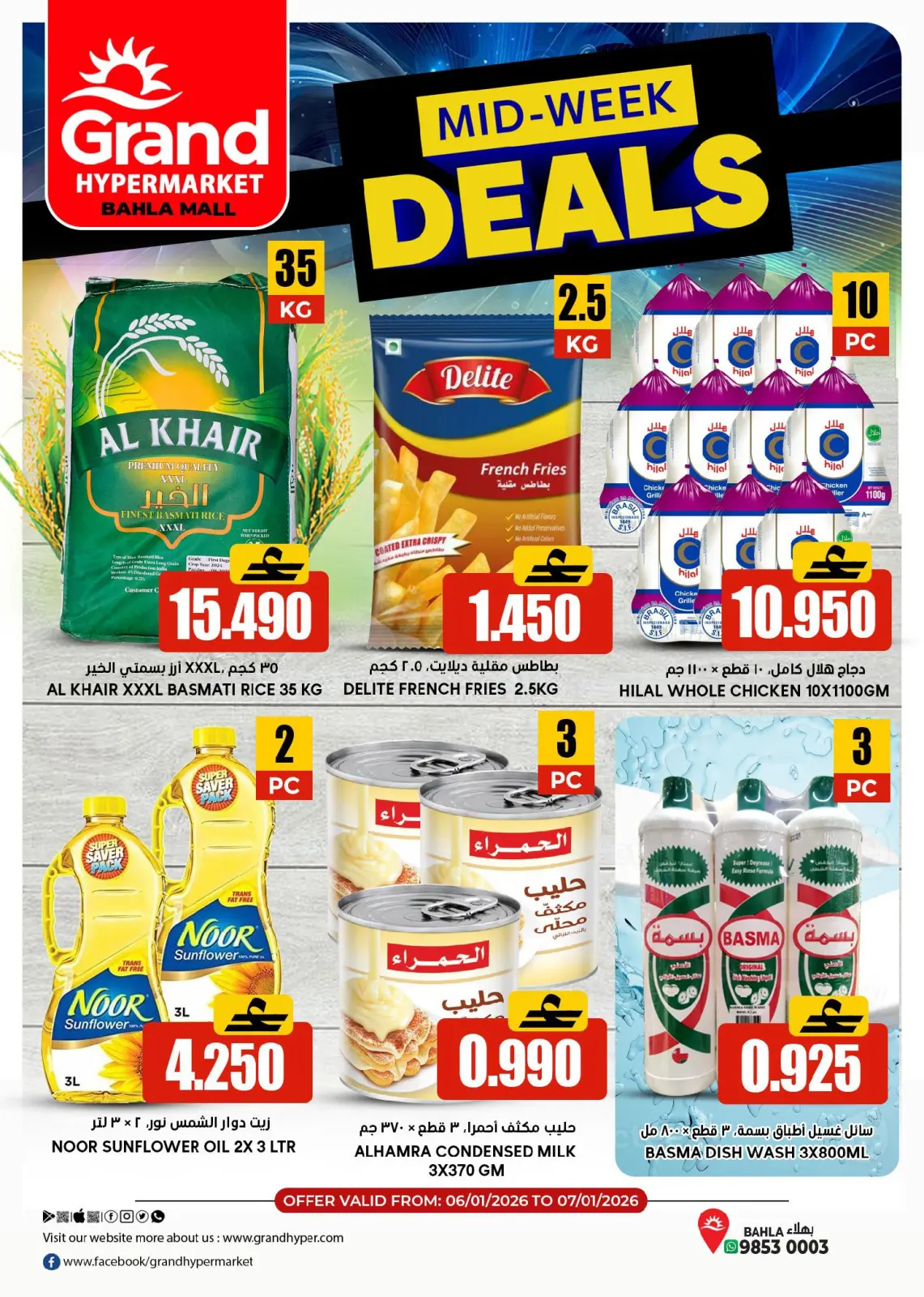 تنويه: صور وأسعار عروض جراند هايبر ماركت عمان بفروع بهلاء عروض منتصف الإسبوع المعروضة في هذا الكاتالوج لأغراض توضيحية فقط، وتخضع للتوفر في الفروع خلال فترة العرض.