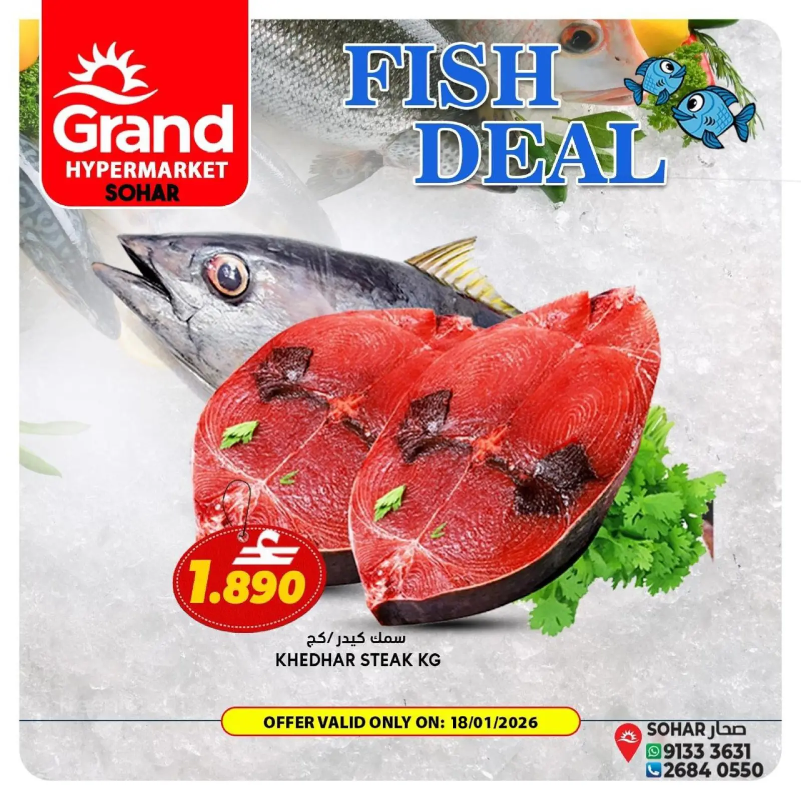 اكتشف أحدث عروض جراند هايبر ماركت في عمان اليوم بفروع صحار وتصفح كاتالوج صفقات السمك واستفد من أفضل الأسعار حتى 18 يناير 2026.