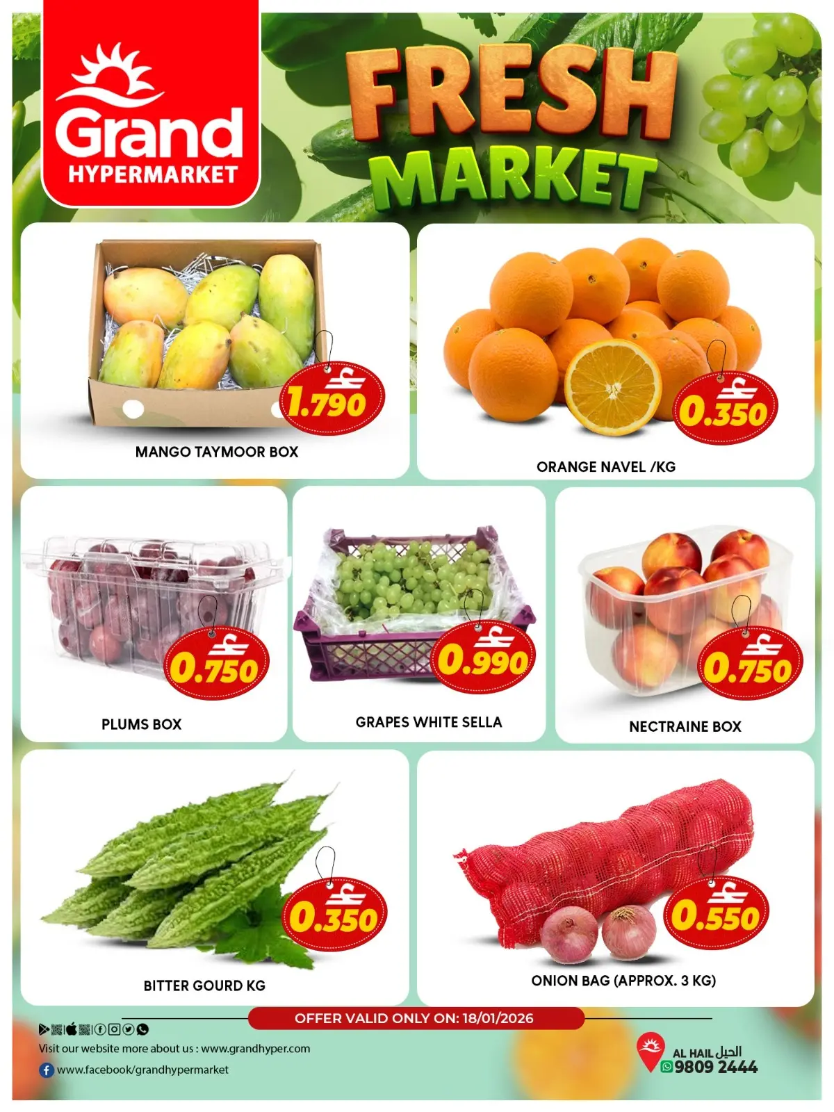 اكتشف أحدث عروض جراند هايبر ماركت في عمان اليوم بفروع الحيل وتصفح كاتالوج عروض السوق الطازج واستفد من أفضل الأسعار حتى 18 يناير 2026.