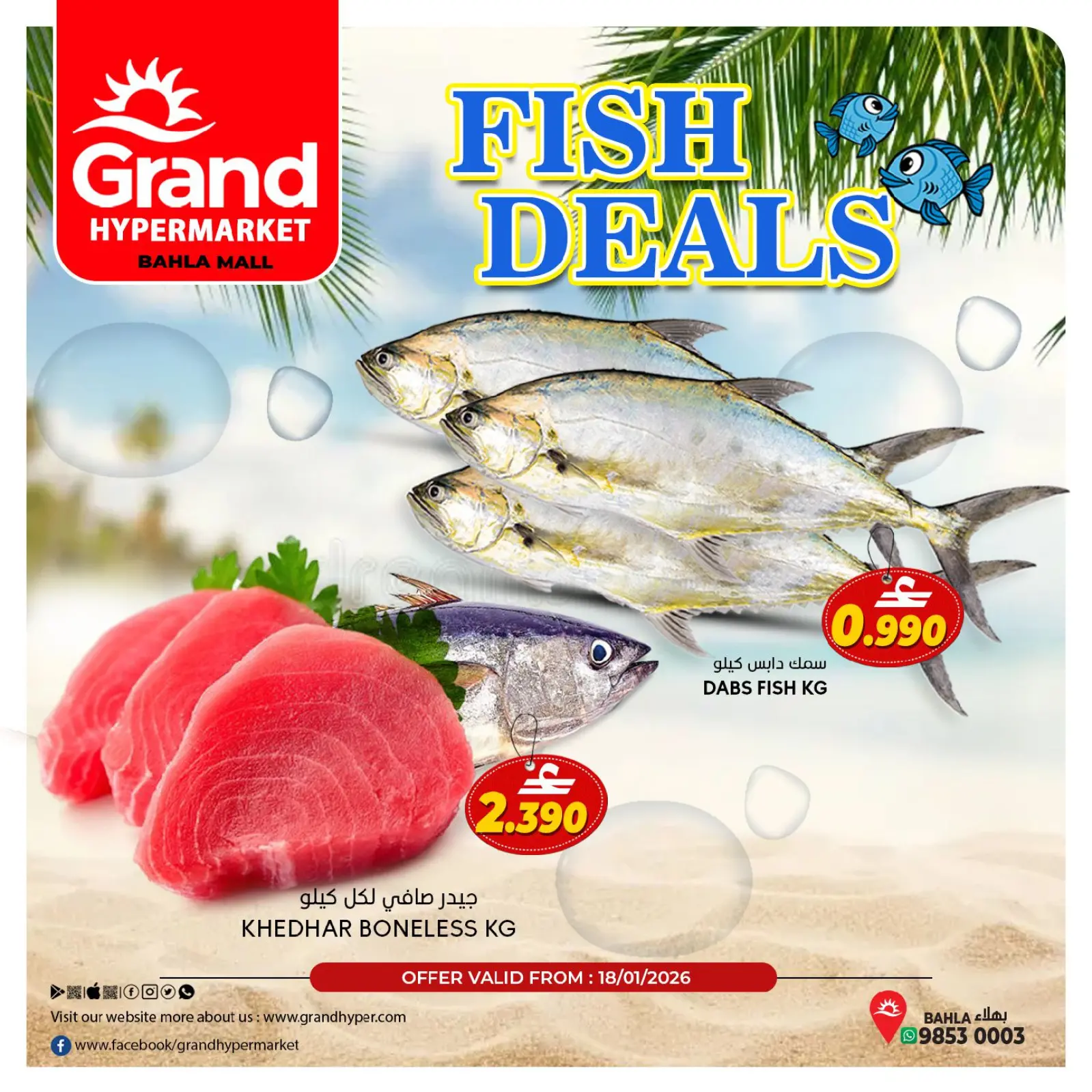 اكتشف أحدث عروض جراند هايبر ماركت في عمان اليوم بفروع بهلاء وتصفح كاتالوج صفقات السمك واستفد من أفضل الأسعار حتى 18 يناير 2026.
