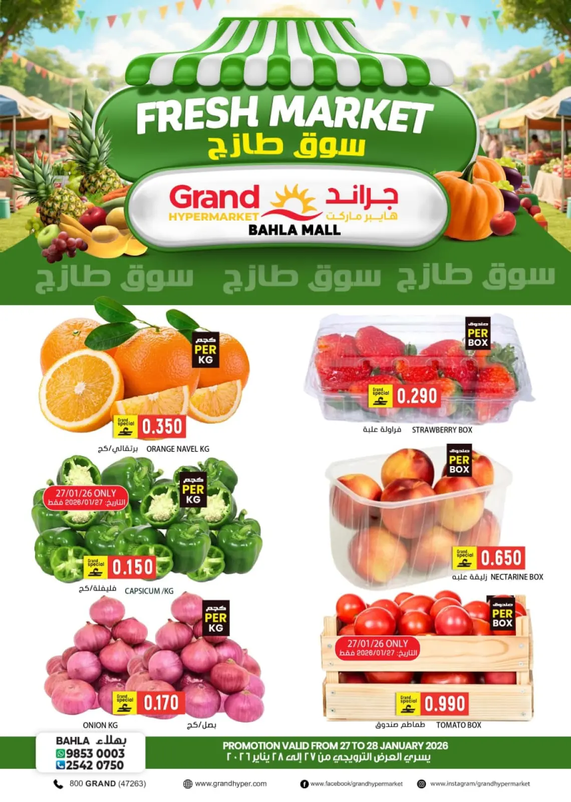 اكتشف أحدث عروض جراند هايبر ماركت في عمان اليوم بفروع بهلاء وتصفح كاتالوج عروض السوق الطازج واستفد من أفضل الأسعار حتى 28 يناير 2026.