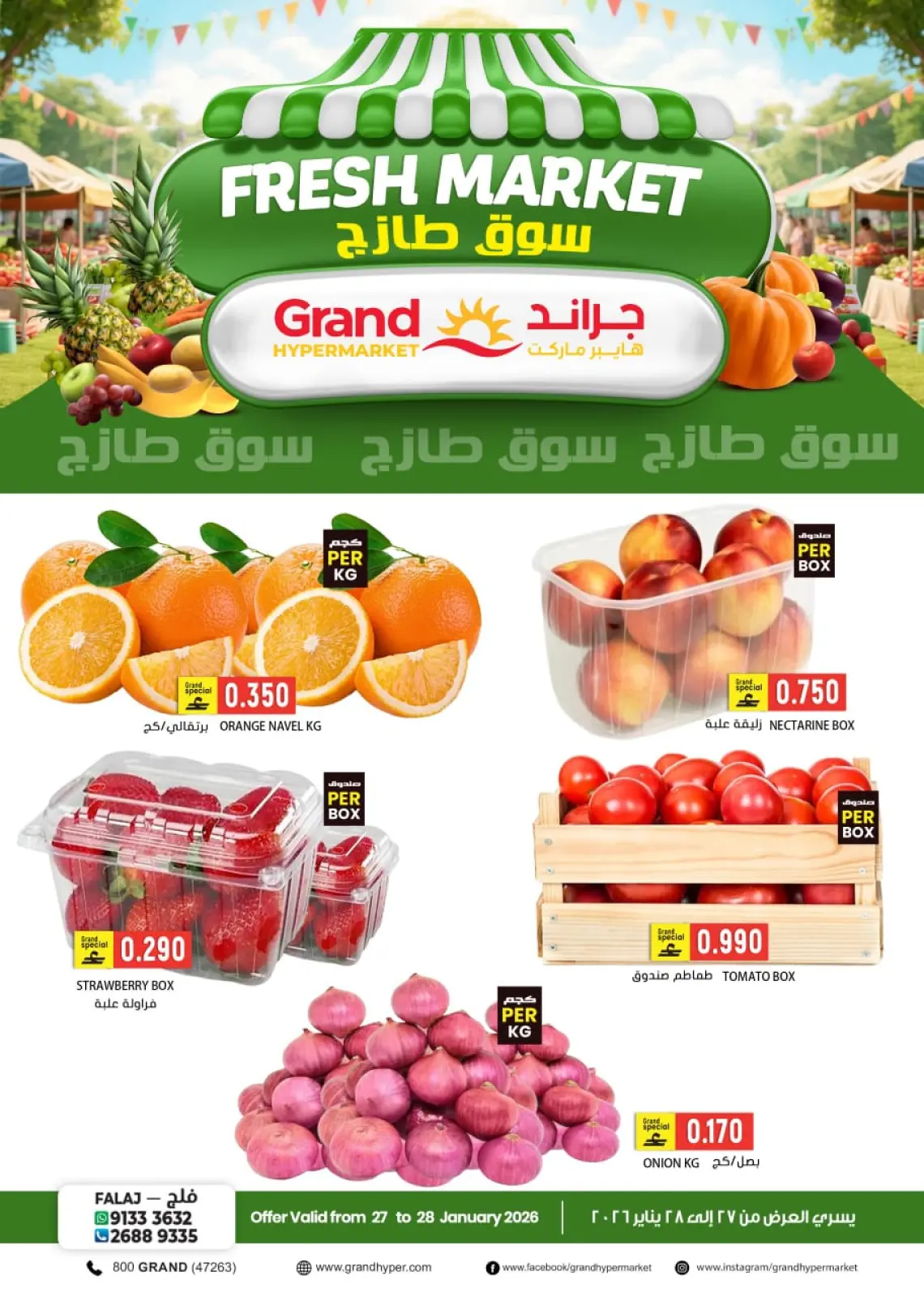 عروض جراند هايبر ماركت فلج القبائل من 27 حتى 28 يناير 2026 عروض السوق الطازج