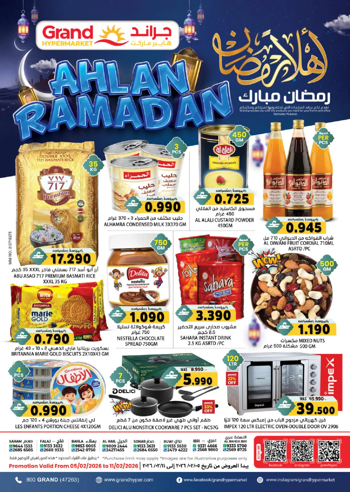 اكتشف أحدث عروض جراند هايبر ماركت في عمان اليوم وتصفح كاتالوج عروض رمضان مبارك واستفد من أفضل الأسعار حتى 11 فبراير 2026.