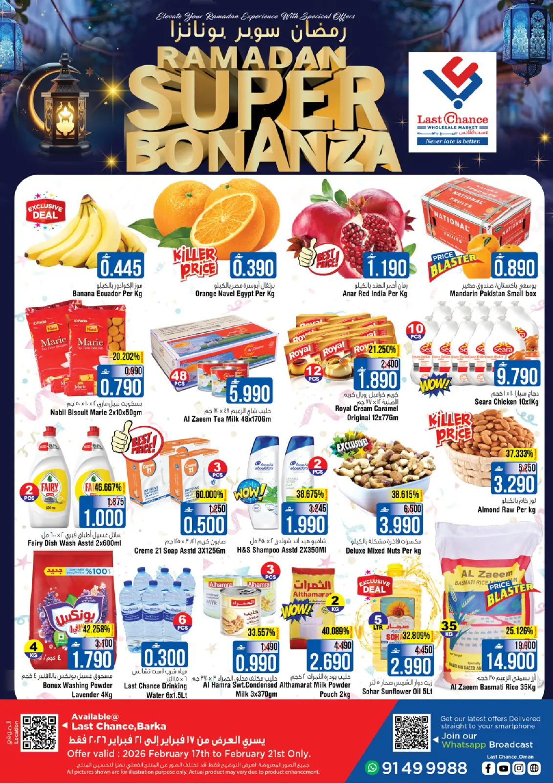 تنويه: صور وأسعار عروض رمضان سوبر بونانزا في لاست تشانس عمان المعروضة في هذا الكاتالوج لأغراض توضيحية فقط، وتخضع للتوفر في الفروع خلال فترة العرض.