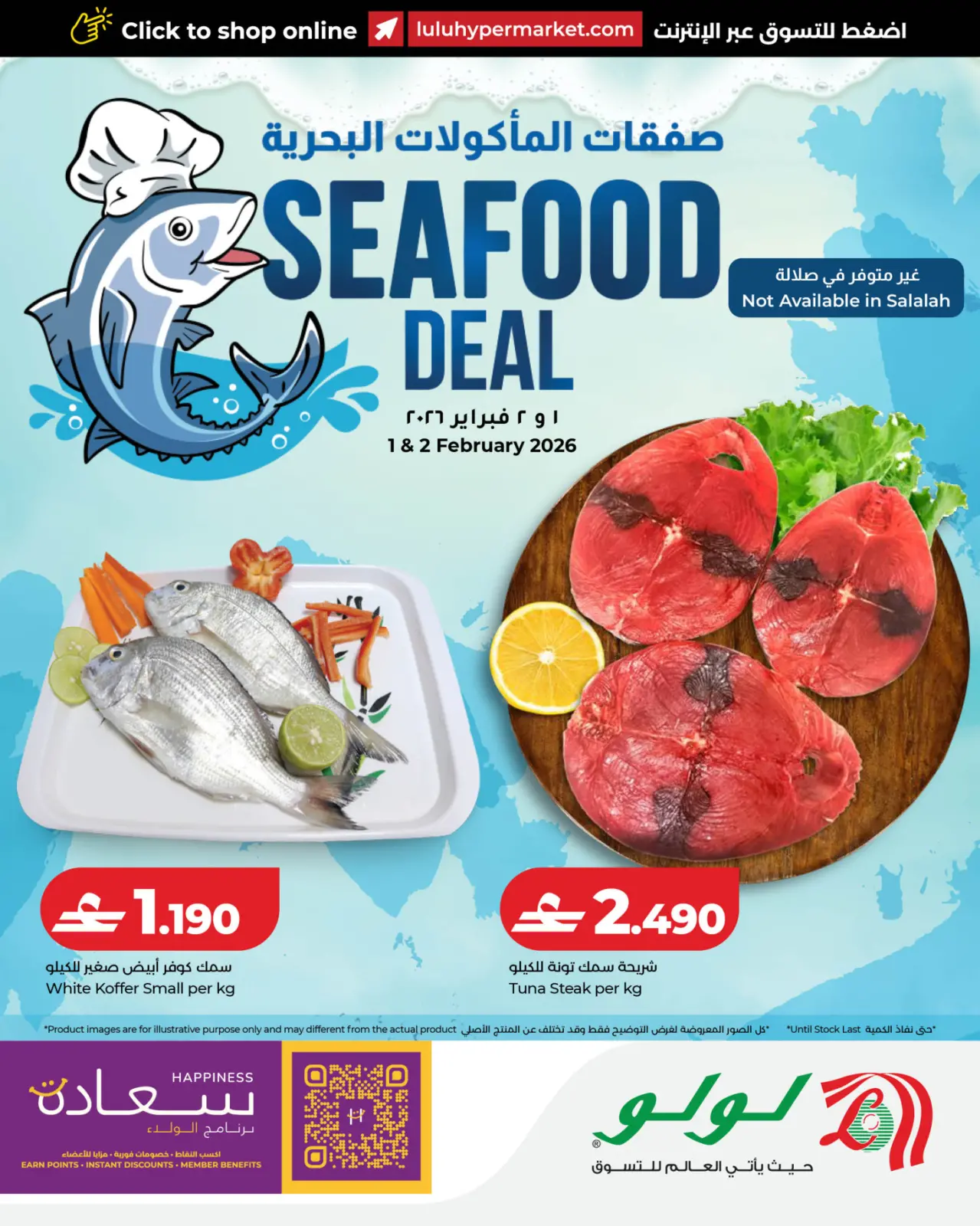 تنويه: صور وأسعار عروض المأكولات البحرية ليوم واحد في لولو عمان المعروضة في هذا الكاتالوج لأغراض توضيحية فقط، وتخضع للتوفر في الفروع خلال فترة العرض.