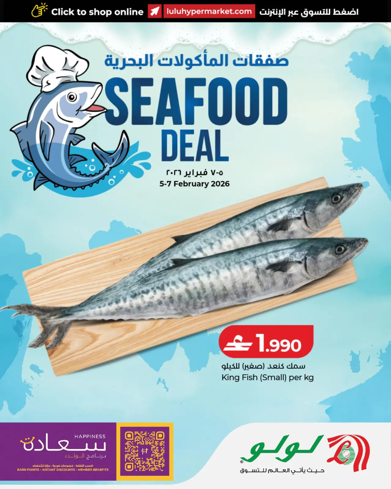 عروض لولو عمان الخميس 5 فبراير 2026 عروض المأكولات البحرية ليوم واحد