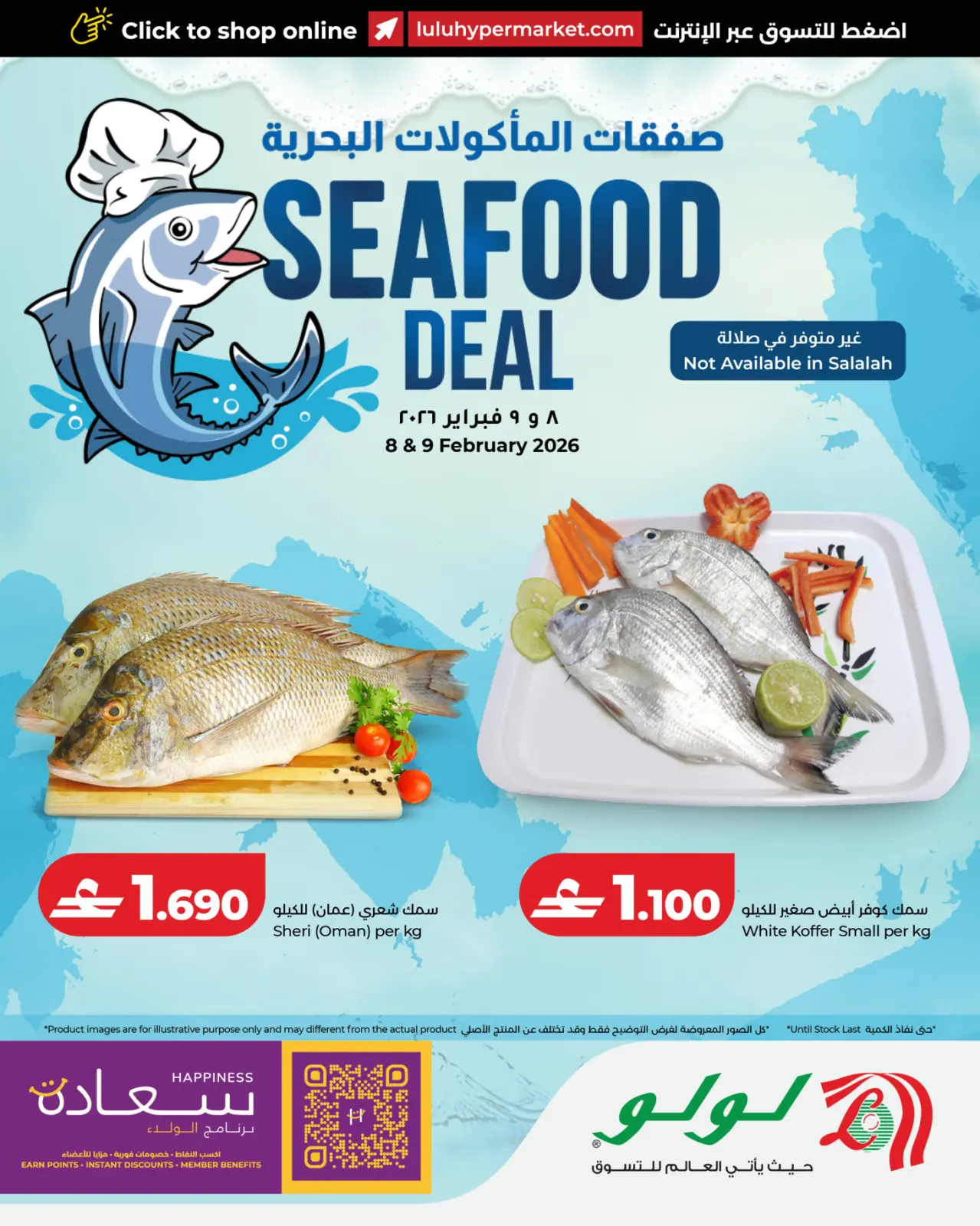 اكتشف أحدث عروض لولو في عمان اليوم وتصفح كاتالوج عروض المأكولات البحرية واستفد من أفضل الأسعار حتى 9 فبراير 2026.