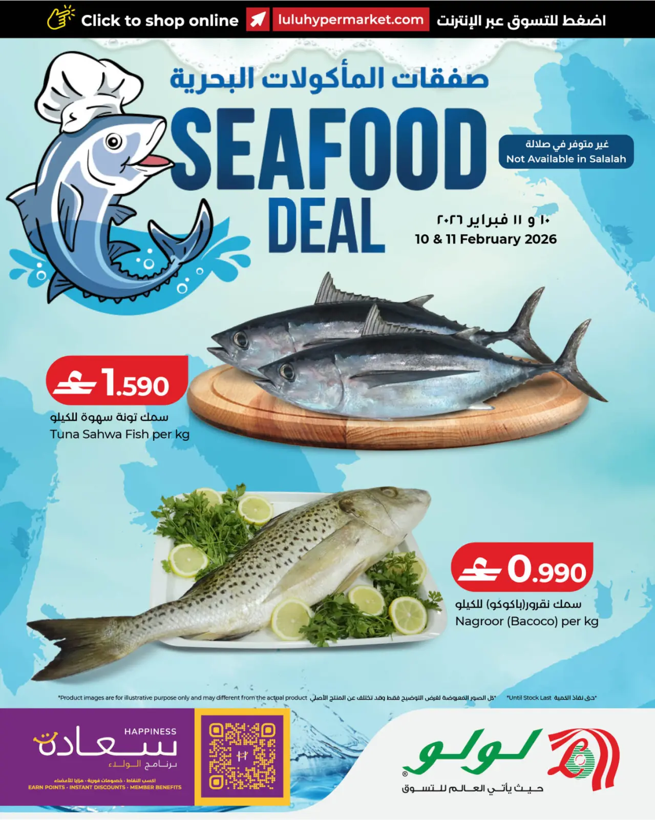 تنويه: صور وأسعار صفقات المأكولات البحرية في لولو عمان المعروضة في هذا الكاتالوج لأغراض توضيحية فقط، وتخضع للتوفر في الفروع خلال فترة العرض.
