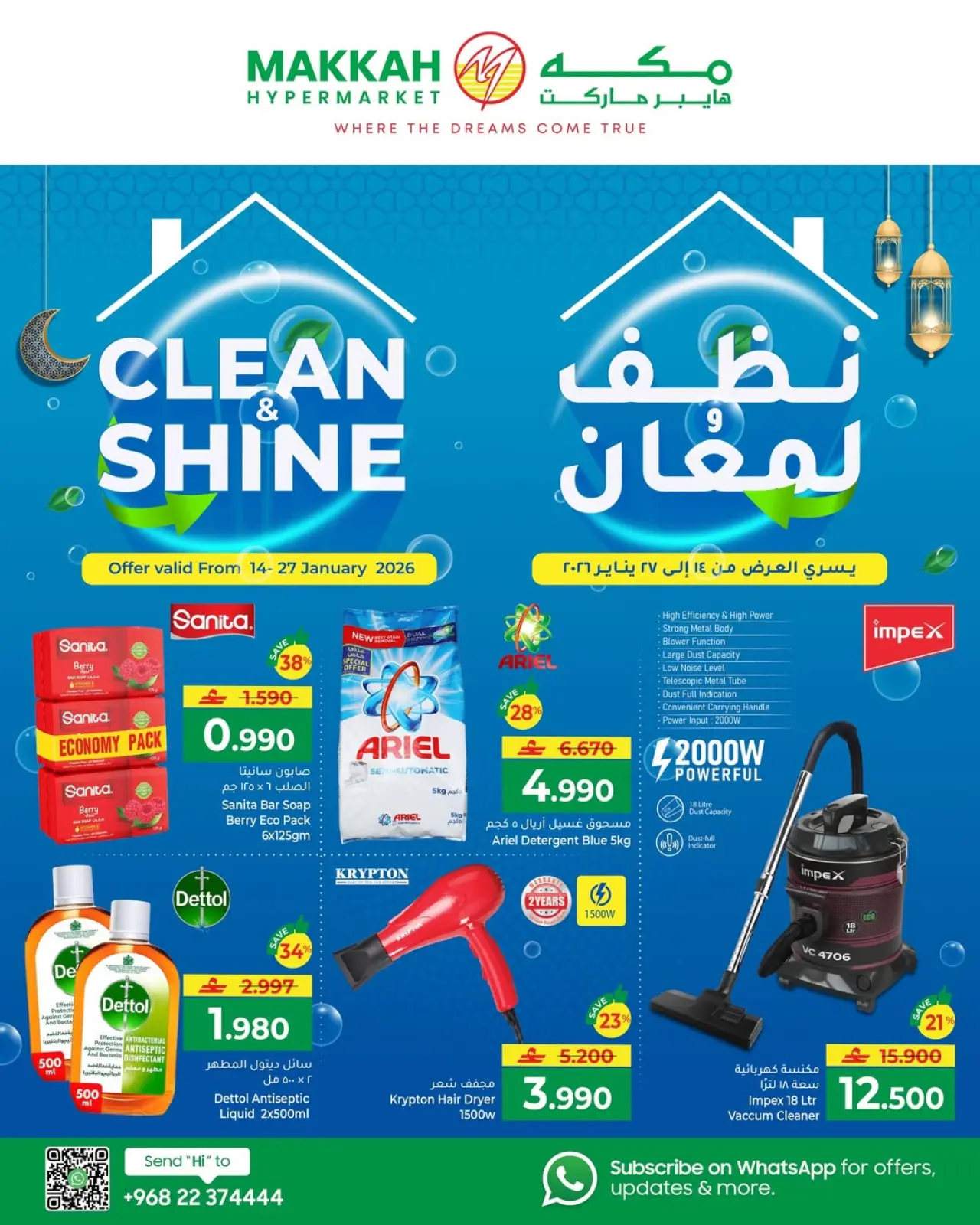 اكتشف أحدث عروض مكة هايبر ماركت في عمان اليوم وتصفح كاتالوج عروض نظافة ولمعان واستفد من أفضل الأسعار حتى 27 يناير 2026.