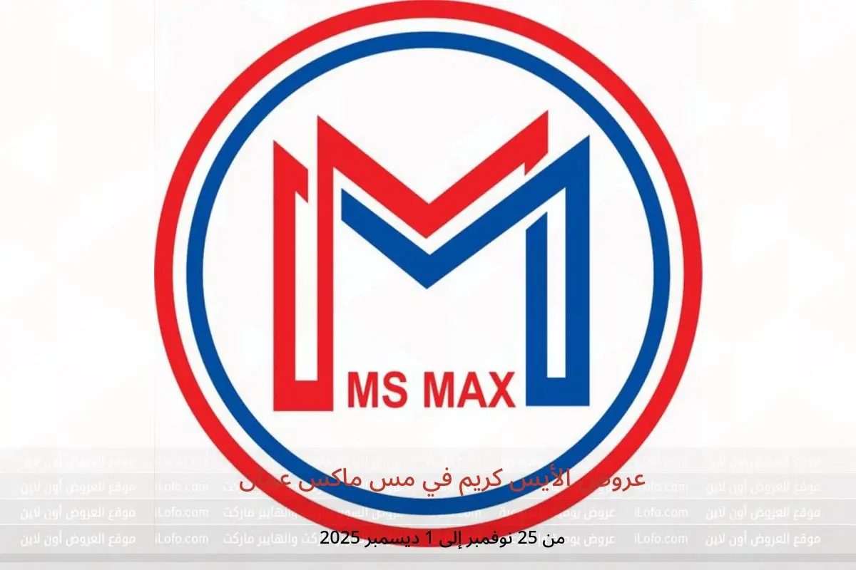 مس ماكس عمان تعلن عن تخفيضات جديدة بعنوان « عروض الأيس كريم » المتوفرة حتي يوم 1 ديسمبر 2025, عروض جديدة وأسعار فقط في عمان.