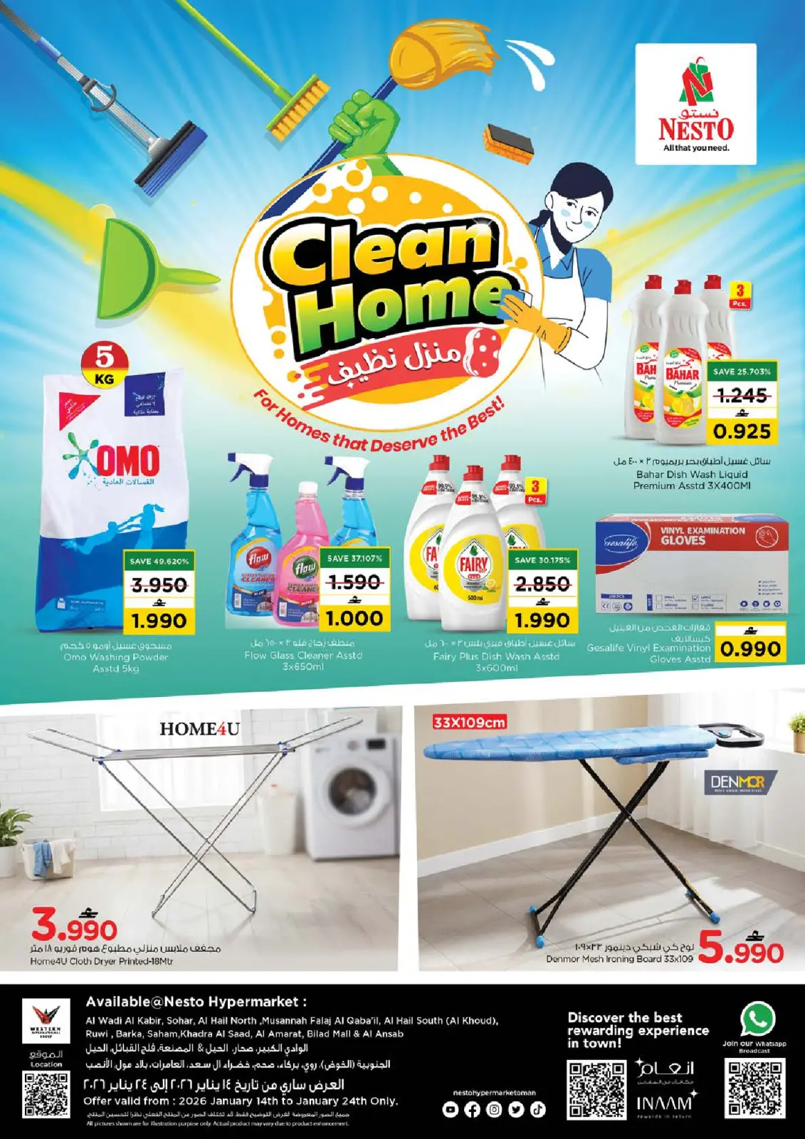 تنويه: صور وأسعار عروض منزل نظيف في نستو عمان المعروضة في هذا الكاتالوج لأغراض توضيحية فقط، وتخضع للتوفر في الفروع خلال فترة العرض.