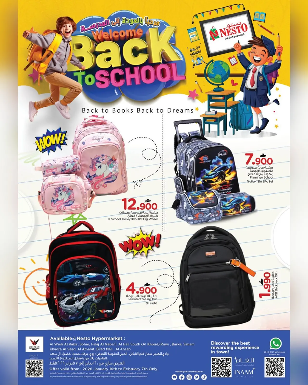 اكتشف أحدث عروض نستو في عمان اليوم وتصفح كاتالوج عروض العودة إلى المدرسة واستفد من أفضل الأسعار حتى 7 فبراير 2026.