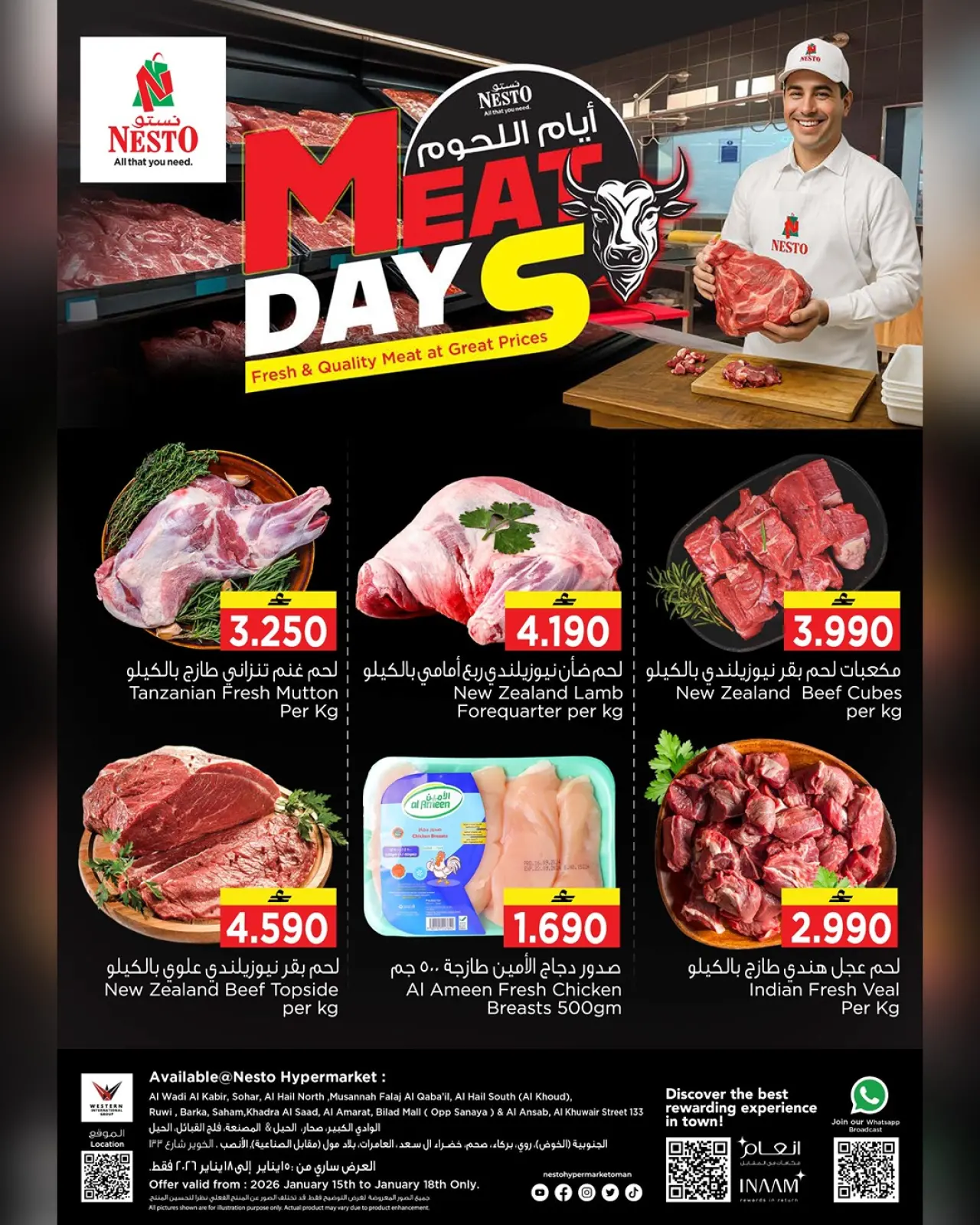 تنويه: صور وأسعار عروض اللحوم في نستو عمان المعروضة في هذا الكاتالوج لأغراض توضيحية فقط، وتخضع للتوفر في الفروع خلال فترة العرض.