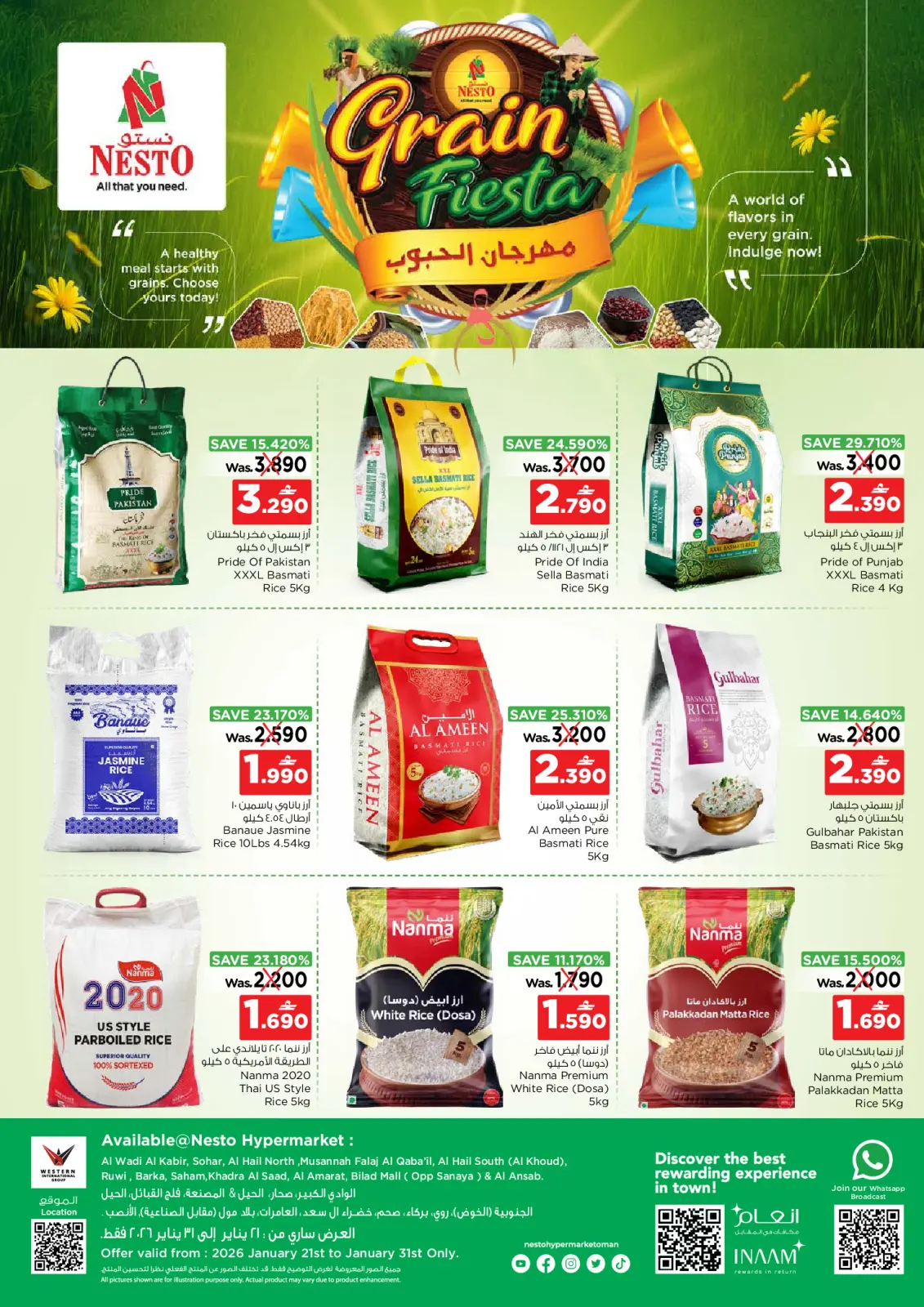 اكتشف أحدث عروض نستو في عمان اليوم وتصفح كاتالوج مهرجان الحبوب واستفد من أفضل الأسعار حتى 31 يناير 2026.