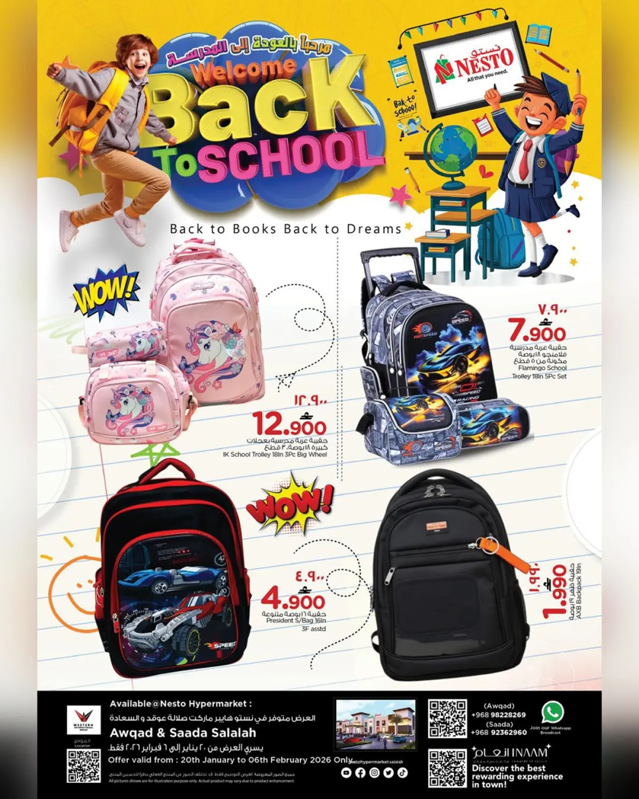 اكتشف أحدث عروض نستو في عمان اليوم بفروع صلالة وتصفح كاتالوج عروض العودة إلى المدرسة واستفد من أفضل الأسعار حتى 6 فبراير 2026.