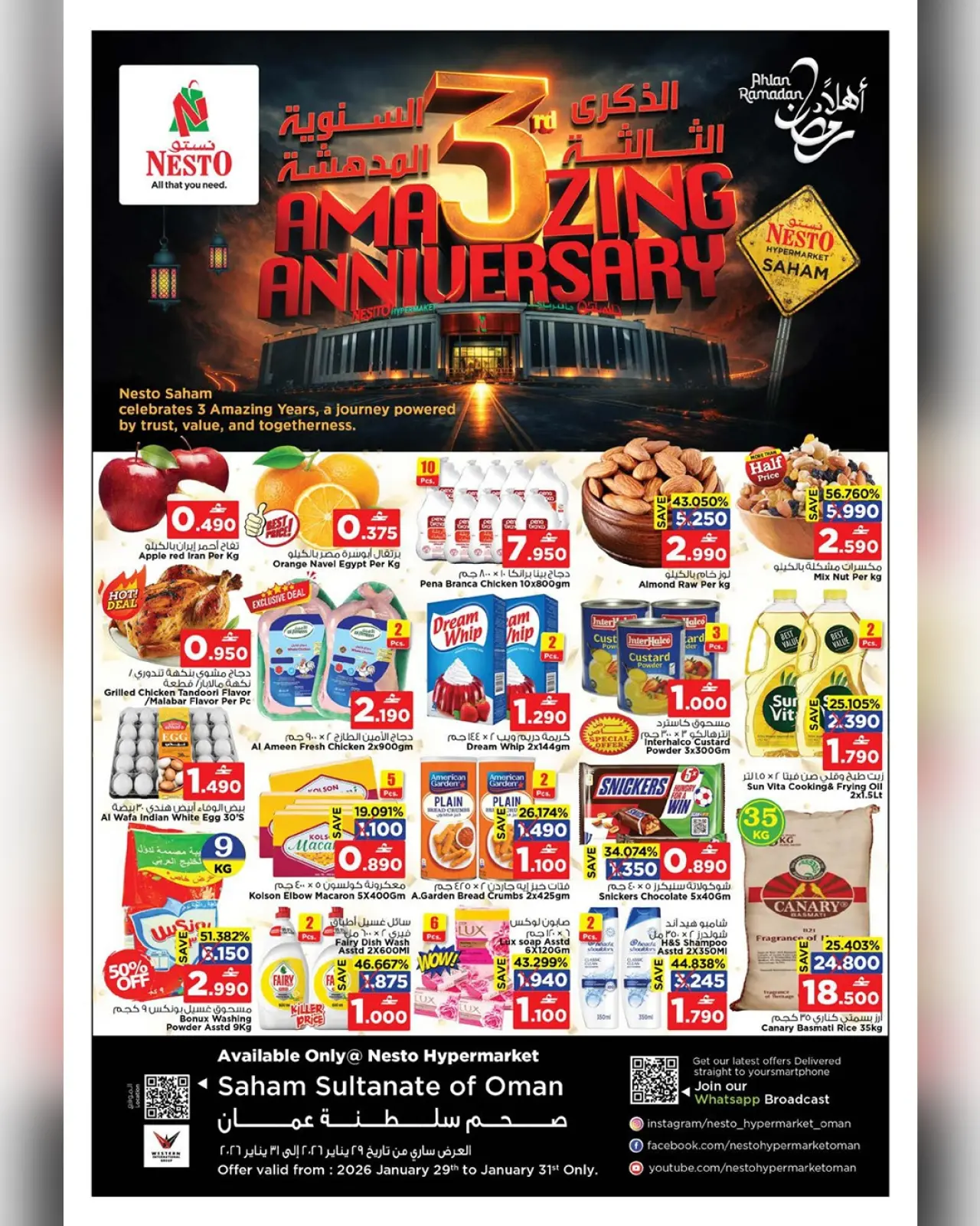 تنويه: صور وأسعار عروض نستو عمان بفروع صحم عروض الذكرى السنوية المعروضة في هذا الكاتالوج لأغراض توضيحية فقط، وتخضع للتوفر في الفروع خلال فترة العرض.