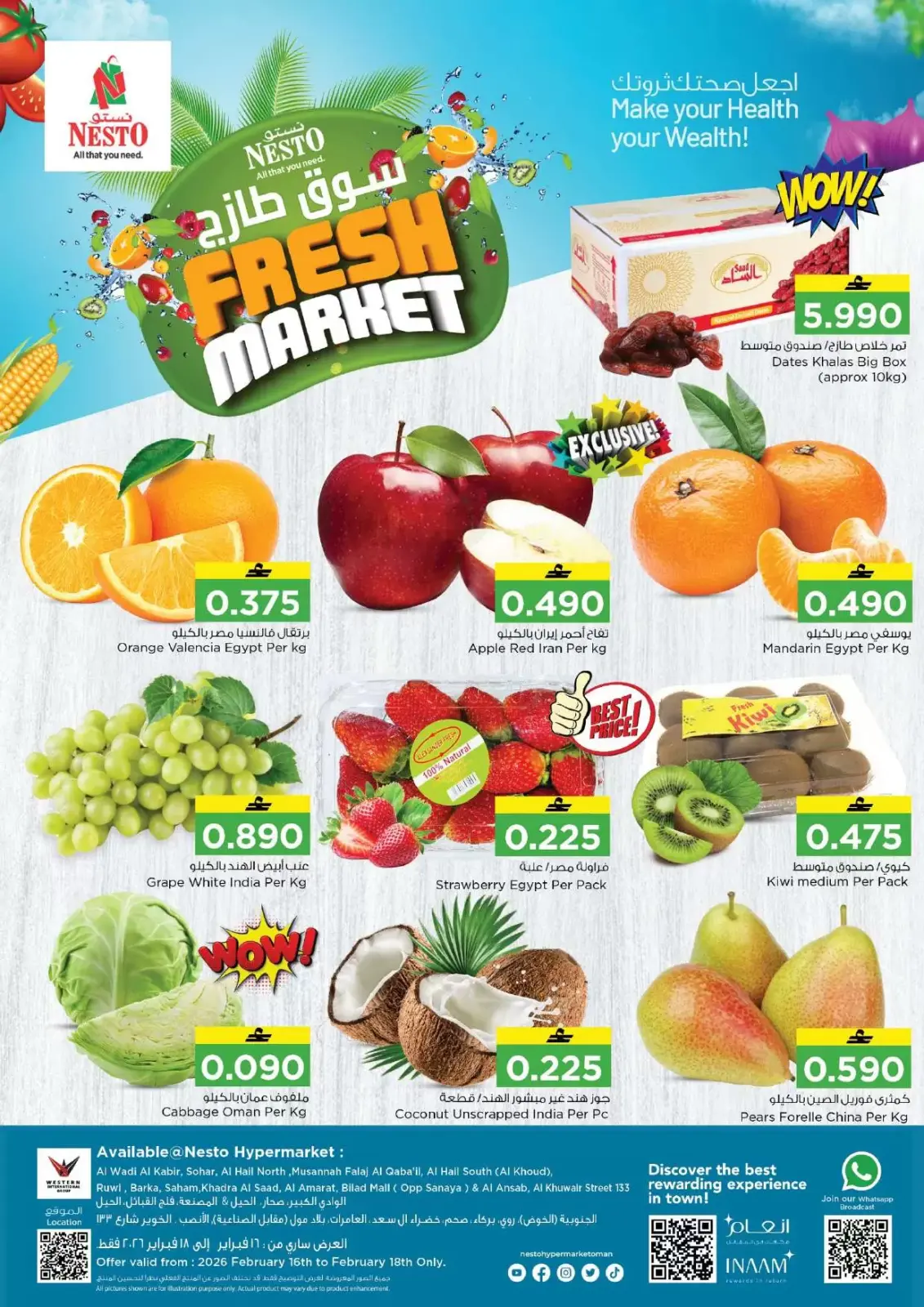عروض نستو عمان من 16 حتى 18 فبراير 2026 عروض السوق الطازج