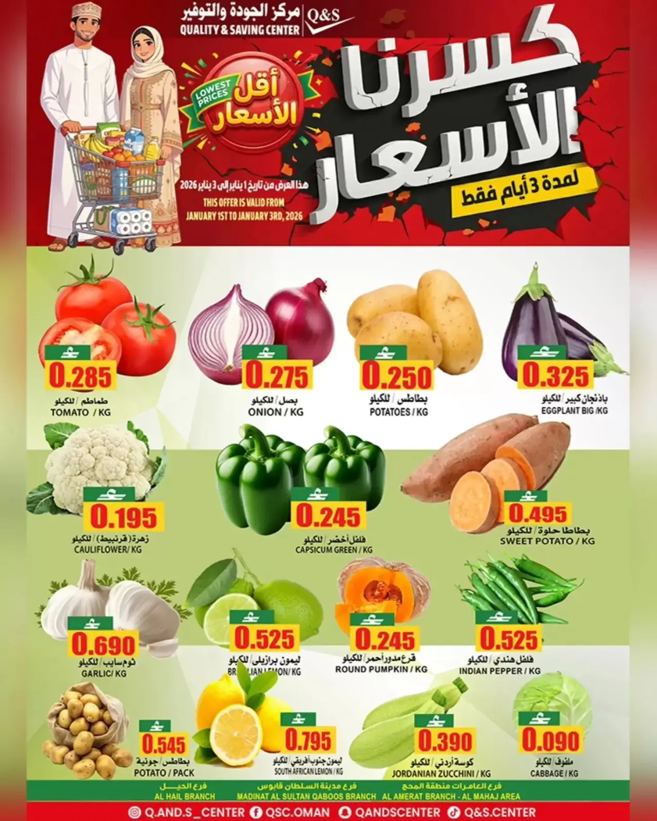 عروض مركز الجودة والتوفير عمان من 1 حتى 3 يناير 2026 عروض كسرنا الأسعار