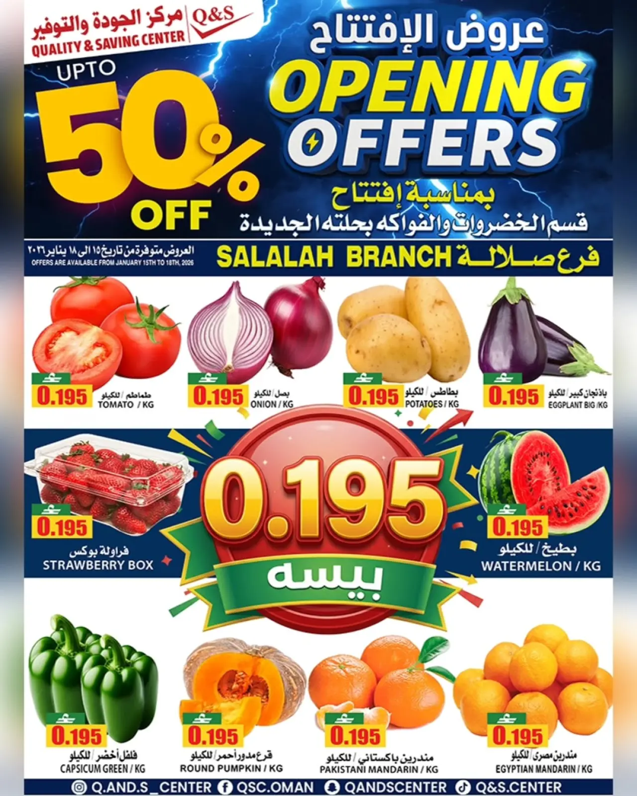 عروض مركز الجودة والتوفير صلالة من 15 حتى 18 يناير 2026 عروض الإفتتاح