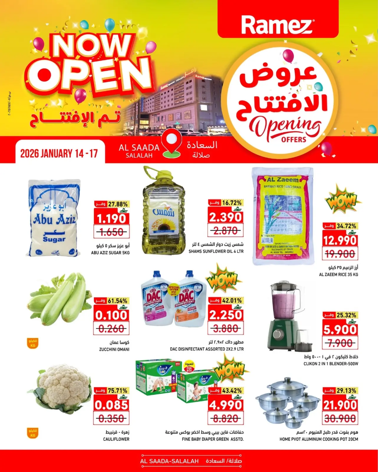 تنويه: صور وأسعار عروض أسواق رامز عمان بفروع صلالة عروض الإفتتاح المعروضة في هذا الكاتالوج لأغراض توضيحية فقط، وتخضع للتوفر في الفروع خلال فترة العرض.