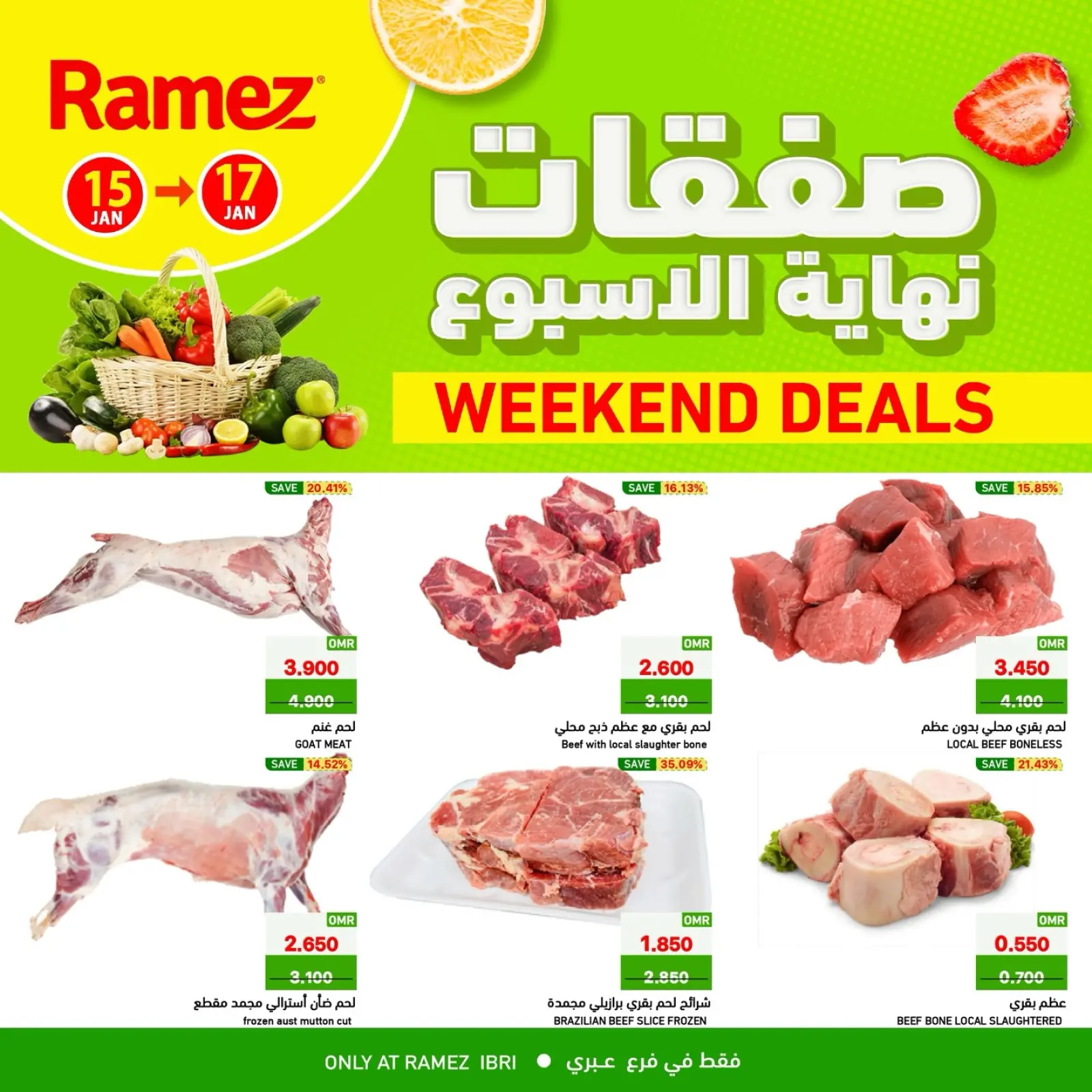 تنويه: صور وأسعار عروض أسواق رامز عمان بفروع عبري صفقات نهاية الأسبوع المعروضة في هذا الكاتالوج لأغراض توضيحية فقط، وتخضع للتوفر في الفروع خلال فترة العرض.