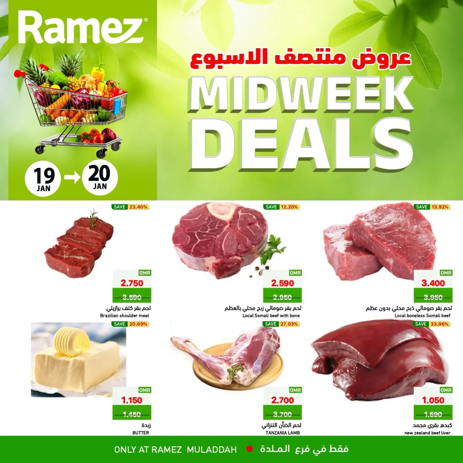 تنويه: صور وأسعار عروض أسواق رامز عمان بفروع الملدة عروض منتصف الإسبوع المعروضة في هذا الكاتالوج لأغراض توضيحية فقط، وتخضع للتوفر في الفروع خلال فترة العرض.