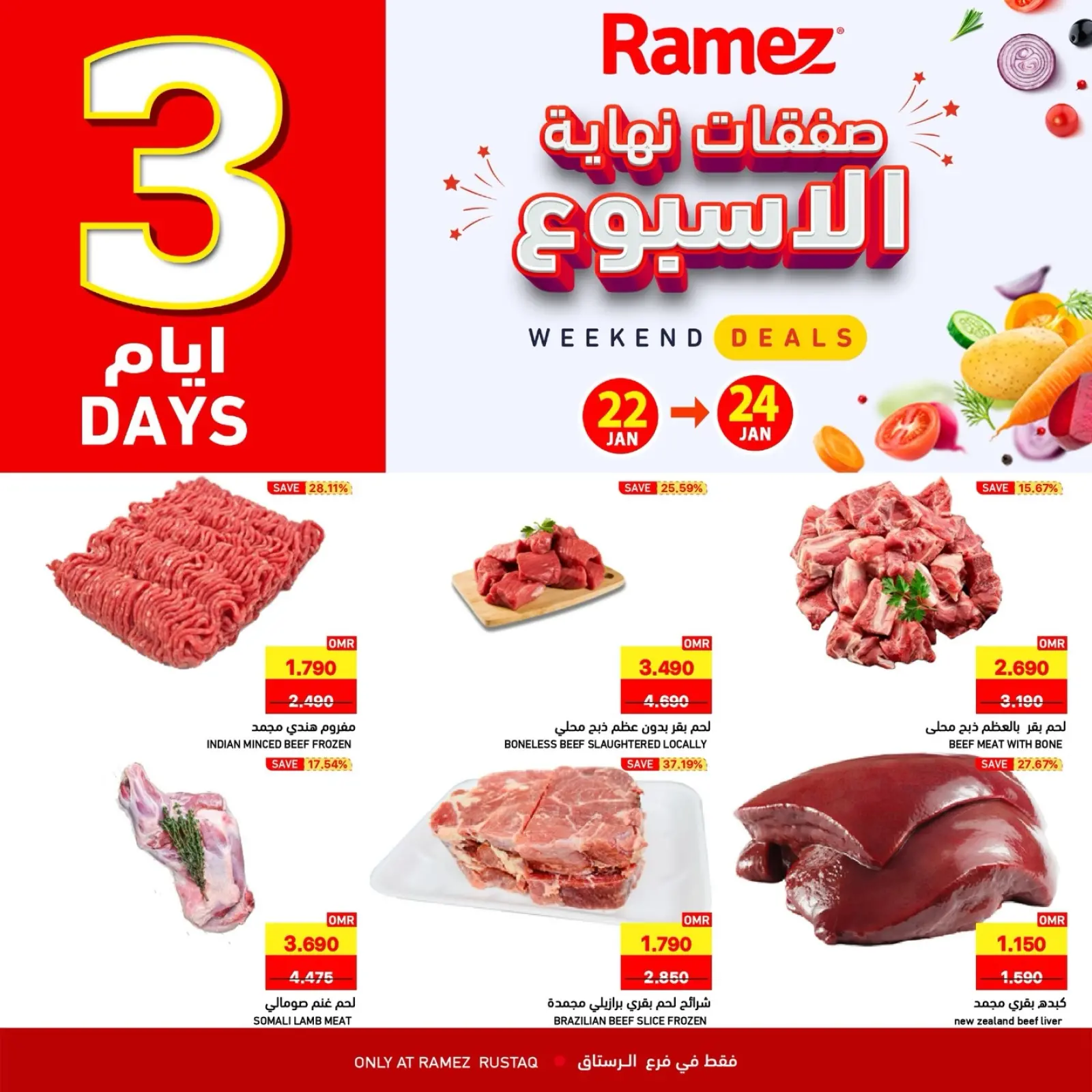 عروض أسواق رامز الرستاق من 22 حتى 24 يناير 2026 صفقات نهاية الأسبوع