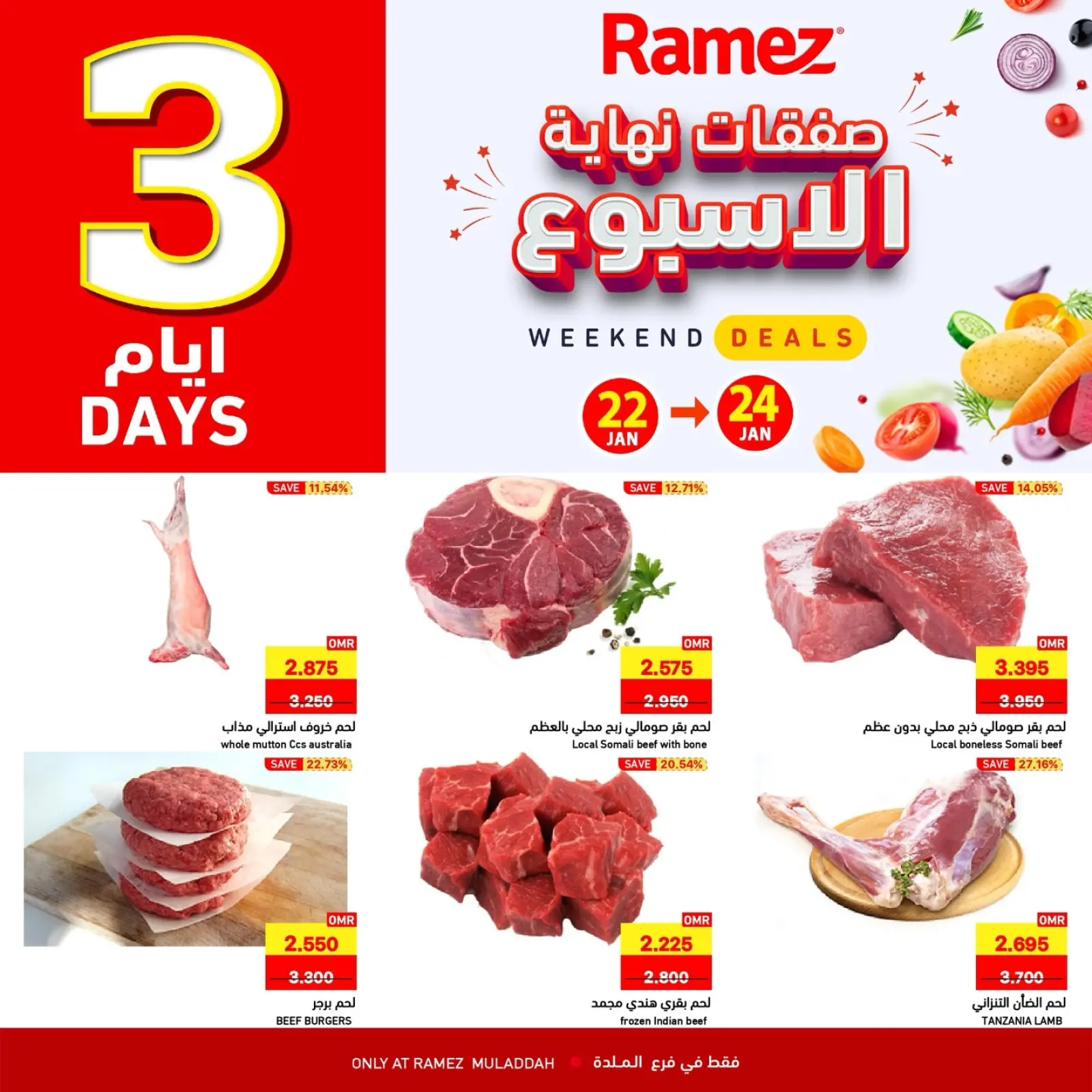 تنويه: صور وأسعار عروض أسواق رامز عمان بفروع الملدة صفقات نهاية الأسبوع المعروضة في هذا الكاتالوج لأغراض توضيحية فقط، وتخضع للتوفر في الفروع خلال فترة العرض.