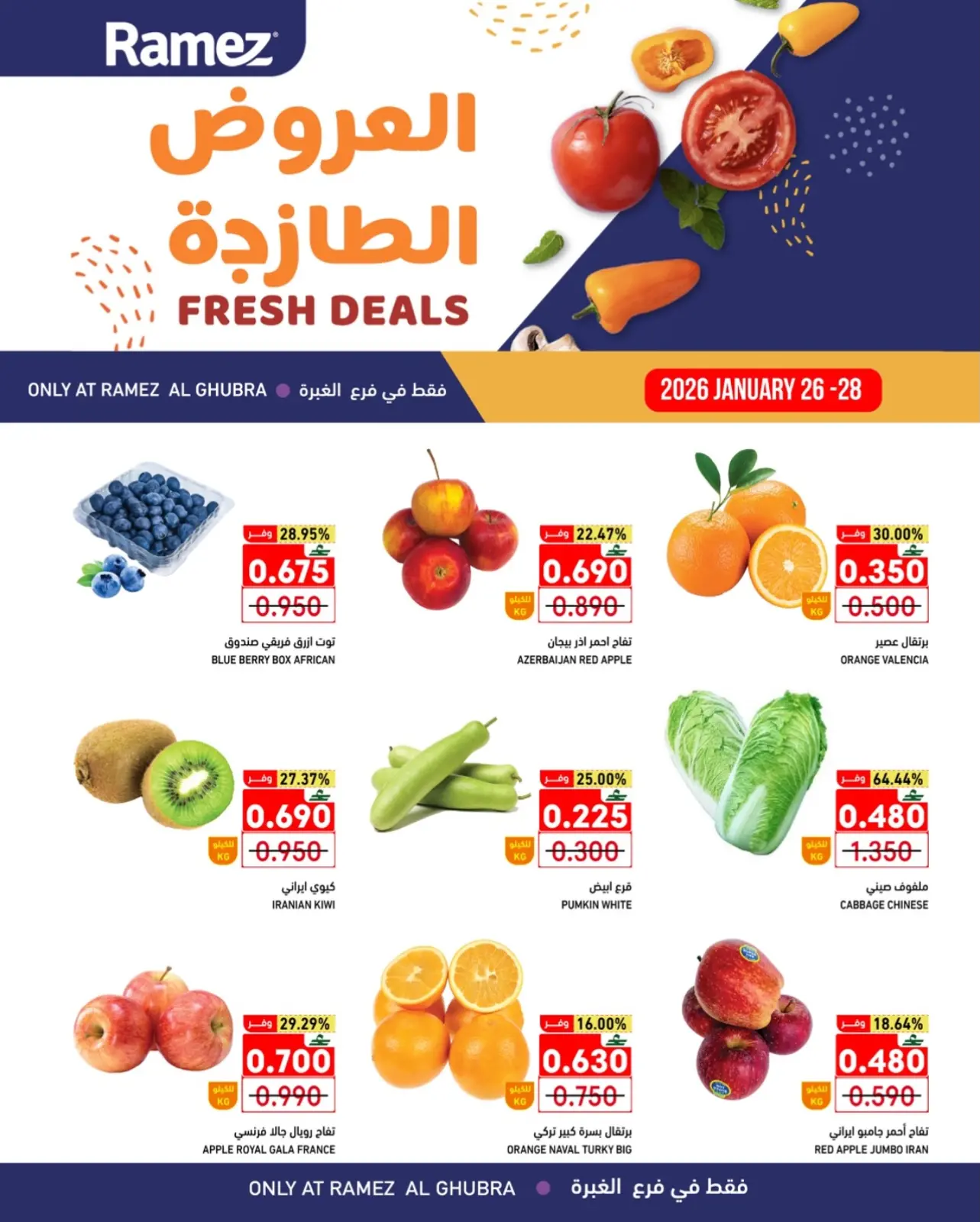 تنويه: صور وأسعار عروض أسواق رامز عمان بفروع الغبرة العروض الطازجة المعروضة في هذا الكاتالوج لأغراض توضيحية فقط، وتخضع للتوفر في الفروع خلال فترة العرض.