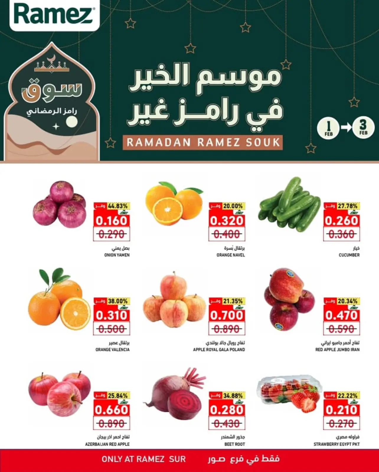 اكتشف أحدث عروض أسواق رامز في عمان اليوم بفروع صور وتصفح كاتالوج عروض منتصف الإسبوع واستفد من أفضل الأسعار حتى 3 فبراير 2026.