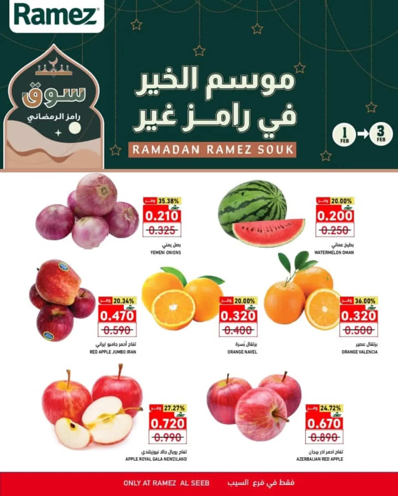 اكتشف أحدث عروض أسواق رامز في عمان اليوم بفروع السيب وتصفح كاتالوج عروض منتصف الإسبوع واستفد من أفضل الأسعار حتى 3 فبراير 2026.