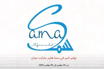 صور وأسعار توفير كبير في سما هايبر ماركت عمان المعروضة هنا لأغراض توضيحية فقط ومتاحة من الأربعاء, 26 نوفمبر 2025 حتي السبت, 29 نوفمبر 2025 ،من i L O F O . C O M.