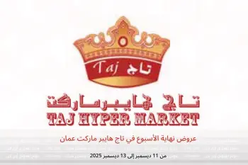 تاج هايبر ماركت عمان تعلن عن تخفيضات جديدة بعنوان « عروض نهاية الأسبوع » المتوفرة حتي يوم 13 ديسمبر 2025, عروض جديدة وأسعار فقط في عمان.