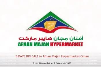 Afnan Majan Hypermarket Oman announces new discounts titled « 3 DAYS BIG SALE » available until 7 December 2025, new offers and prices only in Oman.
