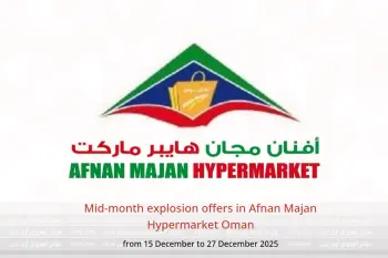 Afnan Majan Hypermarket Oman announces new discounts titled « Mid-month explosion offers » available until 27 December 2025, new offers and prices only in Oman.