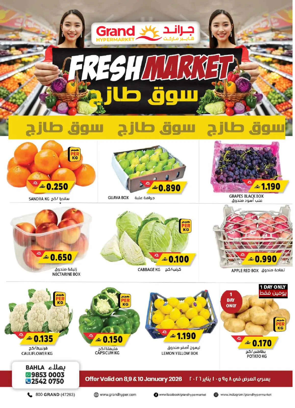 Grand Hypermarket Bahla Offers from 8 to 10 January Fresh Market Deals