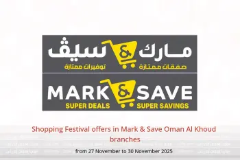 Pictures and prices for Shopping Festival offers in Mark & Save Oman Al Khoud branches and All images shown here are for illustrative purposes only and what is shown here may differ from the actual products And available from Thursday, 27 November 2025 to Sunday, 30 November 2025.from i L O F O . C O M.