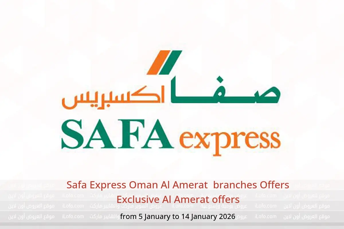 Discover the latest Safa Express offers in Oman today in Al Amerat branches. Browse the Exclusive Al Amerat offers catalog available until 14 January 2026.
