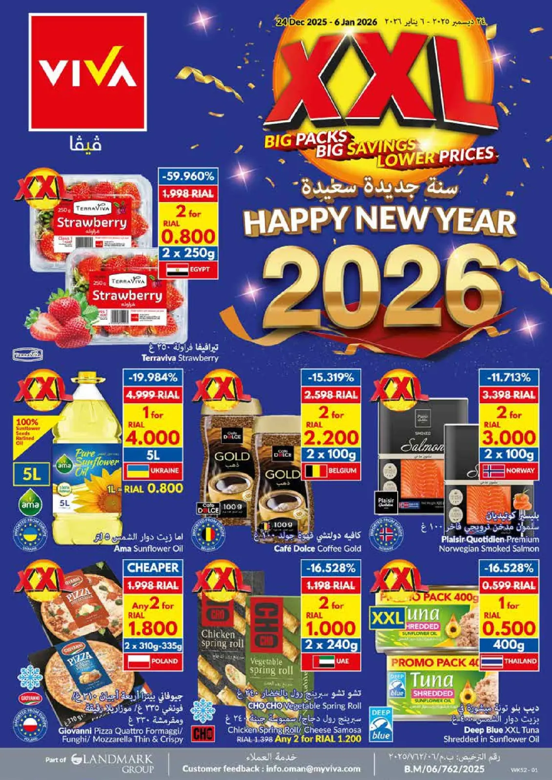 Disclaimer: Pictures and prices for Happy New Year offers in Viva supermarket Oman Shown in this catalog for illustrative purposes only and subject to availability in stores during the promotion period.