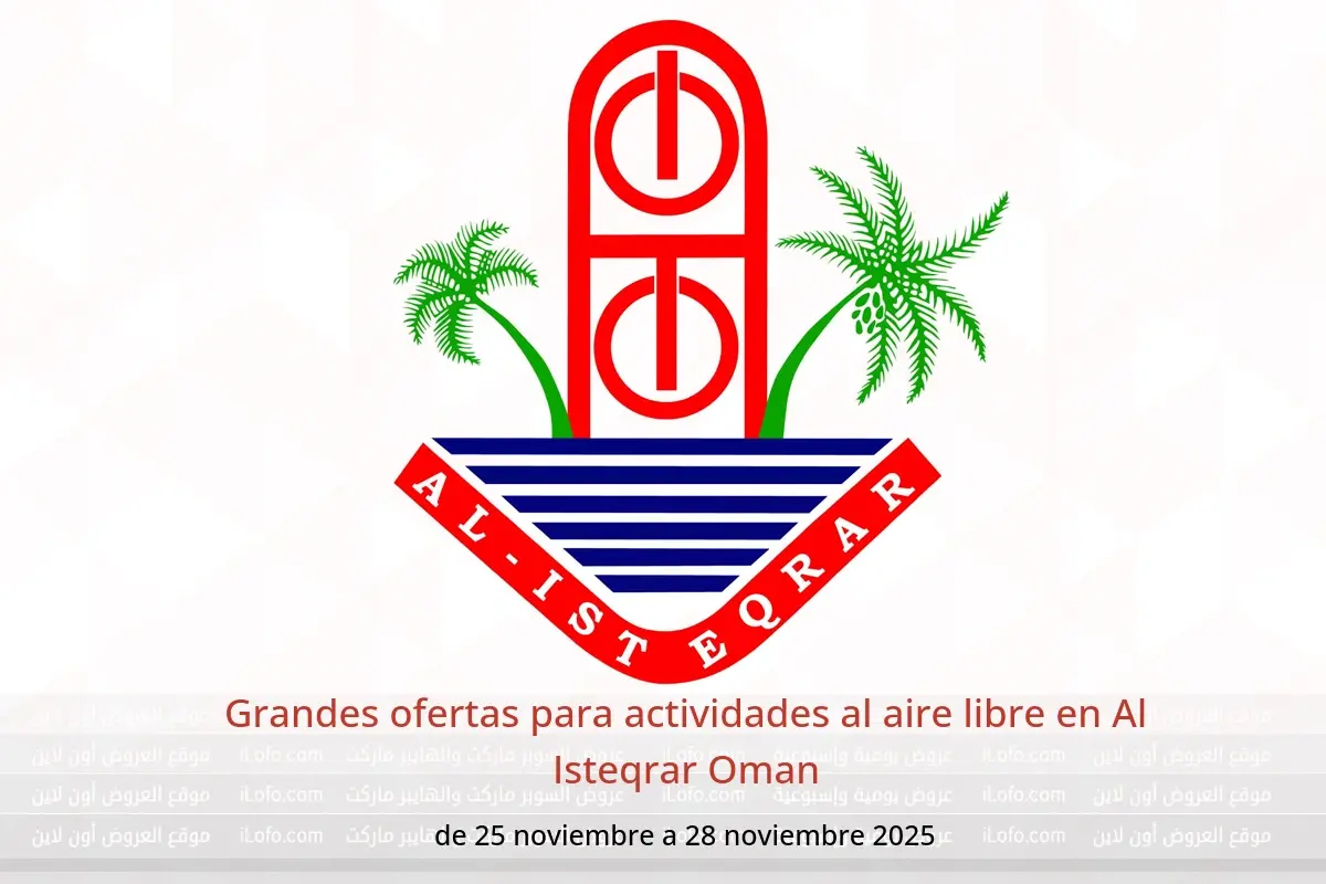 Al Isteqrar Oman anuncia nuevos descuentos titulados « Grandes ofertas para actividades al aire libre » disponibles hasta el día 28 noviembre 2025, nuevas ofertas y precios sólo en Oman.